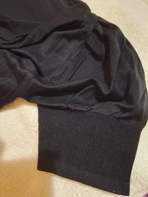 Blusa de mangas negra. Hermosa y sexy blusa de color negro. En las mangas y en el abdomen tiene fajita que te ayuda a que te quede más pegadita y te amolde super bien a tu cuerpo. De enfrente, en el cuello tiene una linda caída que lo hace lucir muy sexy el escote. Puede quedar para una talla chica o mediana, dependiendo que tan ajustada la quieras