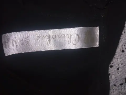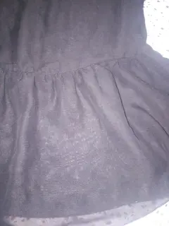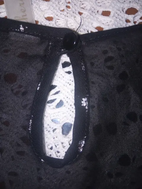 Blusa negra tela transparente manga corta, tiene botón en el cuello en la espalda, y olan a medio pieza. De cintura 74 cm, de axila a axila 80 cm, largo 45 cm . Marca cherokee talla M.