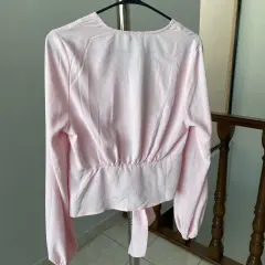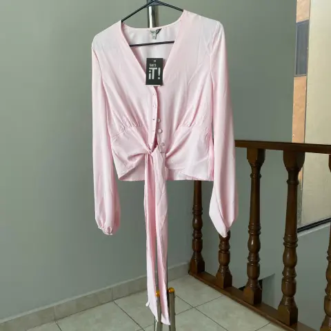Blusa rosa. Blusa rosa claro de manga larga con listones en la parte delantera Queda a la altura del obligo ideal para usar con un pantalón a la cintura y zapatillas 👠A estrenar !! Talla chica
