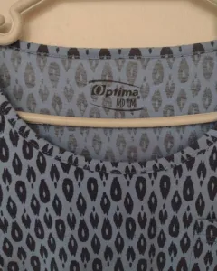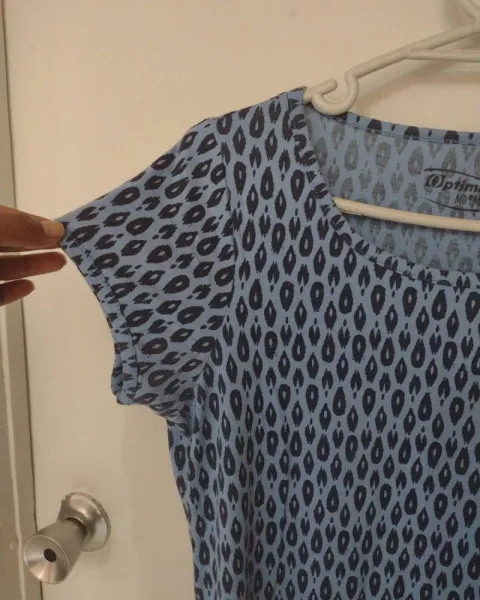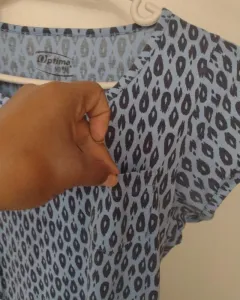 Lindo blusón en color azul con un estampado en todos azules más subidos está muy lindo queda bien para una embarazadita o para cualquier ocaciona está muy cómodo y fresco llega abajo de las rodillas no se transparenta.