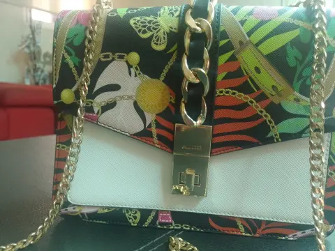 Hermoso crossbody marca Aldo, cadena ajustable, perfecto para uso diario o eventos sociales. Diseño mariposas y cadenas