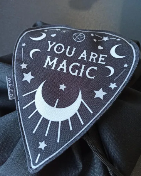 Cosmetiquera circular tipo morral, cierra con jareta y botón a presión. Mide 50 cm de diámetro abierta. Súper práctica y funcional.