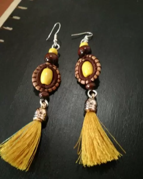 Aretes Largos Amarillos Artesanales. Piezas originales, modernas y de vanguardia empleando la técnica del bordado de fibras vegetales (ocoxal). 100% Artesanales de hoja de pino, únicos, innovadores y que inspiran el cuidado del medio ambiente. Consumo con propósito, consumo responsable. No olvides visitar mi closet conocer mi joyeria y bisutería y armar tus juegos para lograr envios gratis!!