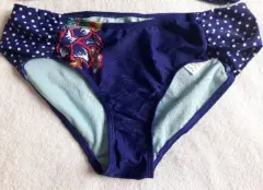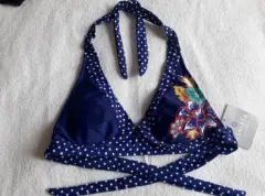 Hermoso traje de baño, marca Athleta, es armado, el top es talla xs pero viene amplio, queda a talla ch o m ya que trae tirantes para ajustarse en cuello y espalda, el bikini es talla m fiel a su talla. Color azul rey con lunares blancos y flor-hojas en top y bikini.