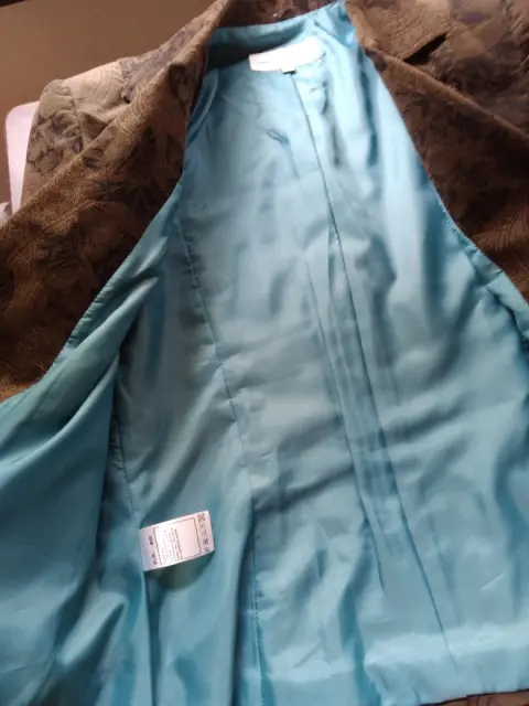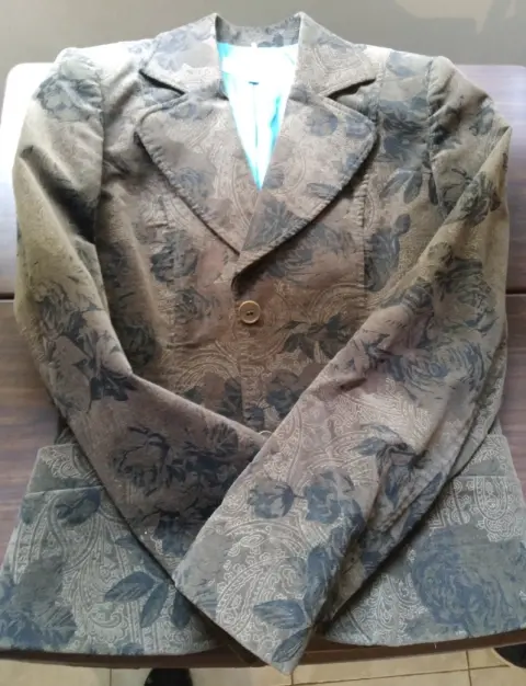 Blazer aterciopelado, ideal para climas frios. La tela es aterciopelada con estampado de flores y grecas