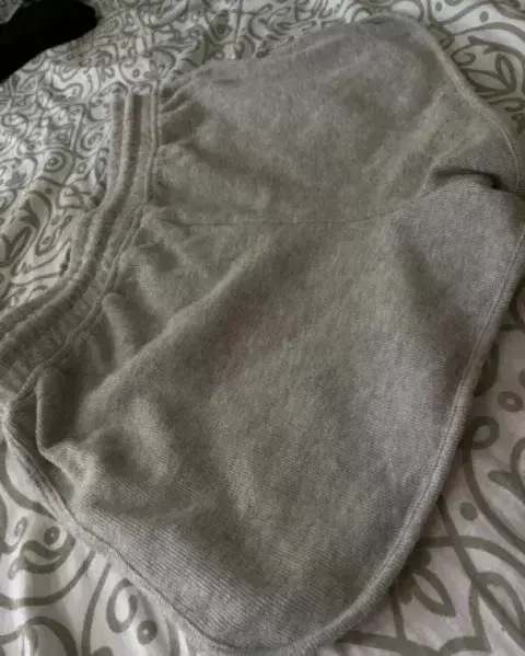 Short gris claro de algodón. La tela es muy suave, y el color está intacto, se usaron poco, tienen pequeñas bolitas por el uso, casi no se le miran realmente y tienen poco desgaste en la entre pierna(como se mira en una foto)Es talla L que le queda a una talla M