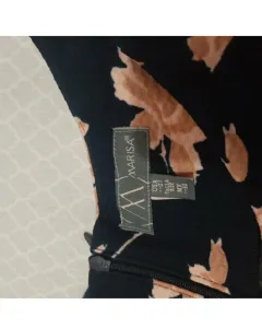 Vestido ajustado tipo lápiz, floreado azul marino con flores color palo de rosa, incluye cinturón, llega arriba de la rodilla talla 30