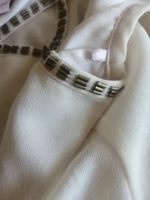 Vestido corto color hueso,, corto con forro, es talla chica la talla es correcta