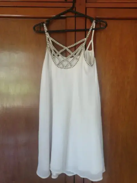 Vestido de gasa corto casual. Vestido corto color hueso,, corto con forro, es talla chica la talla es correcta