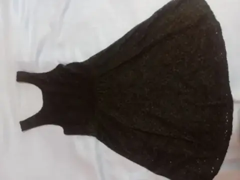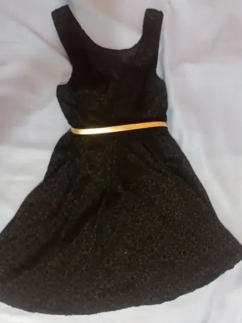 Vestido negro de encaje. Bello vestido color negro de anclaje, no tiene manga, es de cuello redondo, tiene forro para evitar transparencias. Se vende sin el cinturon
