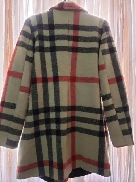 Abrigo Rinna EG Beige con líneas negras y rojas , elegante en excelente estado