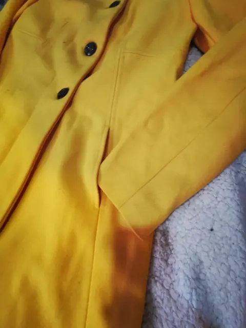 Abrigo amarillo con cuello alto redondo bolsas en los laterales medio cinturón en la parte de atrás con forro talla número 34Marca Style benettonMedidas de axila axila 48 cm y de largo 89 cm- EL PRECIO ES EL FINAL, POR FAVOR REVISEN BIEN LOS DETALLES DE LA PUBLICACIÓN 😊