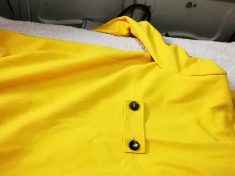 Abrigo amarillo, cuello alto redondo