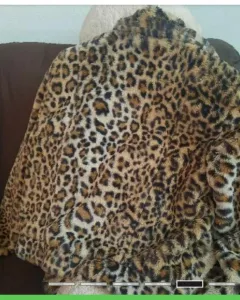 Lindo abrigo animal print, muy calentito, corto con cierre de lado y en las bolsas, talla grande pero queda mejor a una talla mediana.