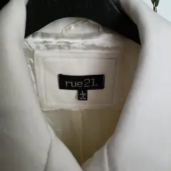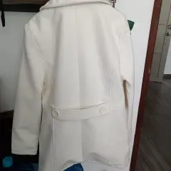 Bonito abrigo color blanco de lana, doble botonadura, trae forro interno, bolsas a los lados y bonita solapa.