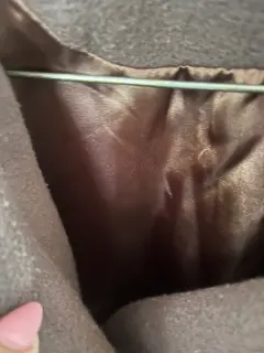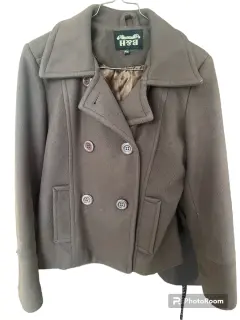 Abrigo café con botones grandes , dos bolsas a los lados , tiene forro es muy calientita .se manda lavado
