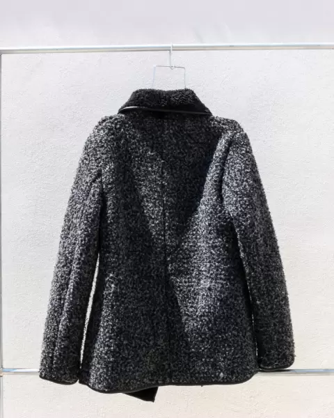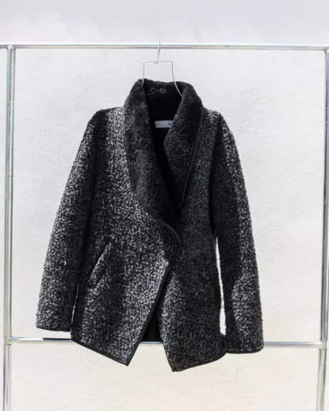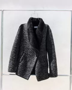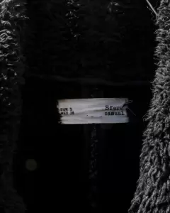 Abrigo muy caliente con diseño en el cierre del lado. Color negro en talla S