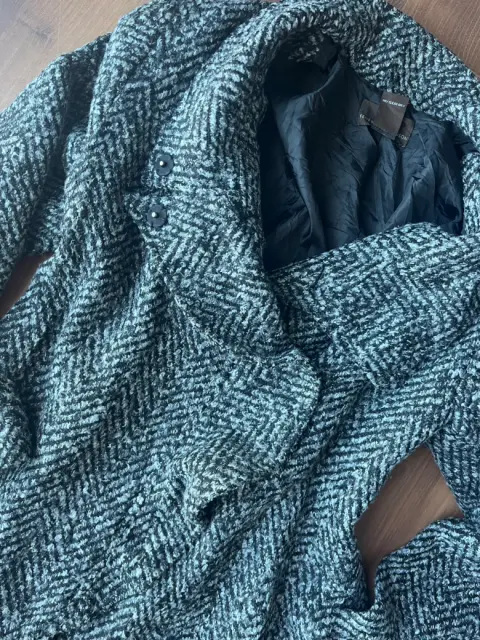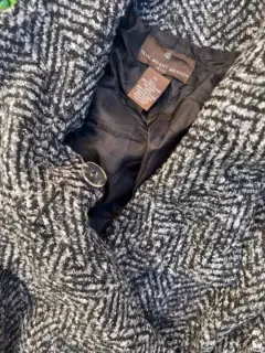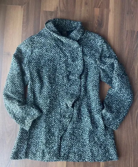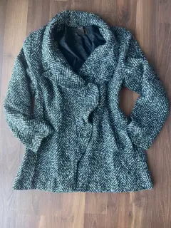 Bonito abrigo con forro jaspeado con bolsas a los costados , talla PL petite da a talla chica - mediana , pongo las medidas de hombro a hombro 47cm , axila a axila 56cm largo 72cm largo manga 57xm .
