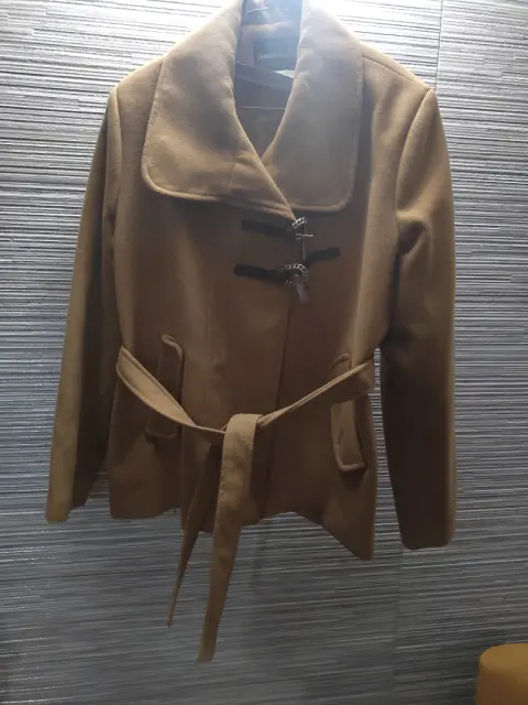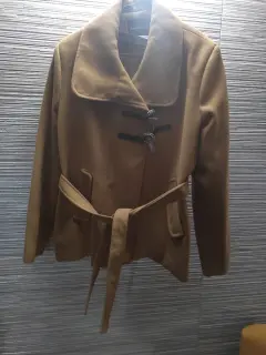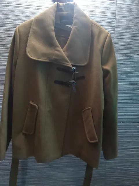 Abrigo corto color camel talla 381 puesta ( los broches están rotos ) en general en excelente estadoMedidasAxila a axila 56 CMLargo 55 cm