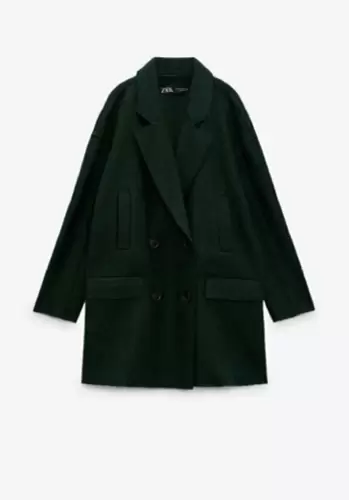 Abrigo clZara, Verde Obscuro 26S,nuevo. Abrigo de Zara talla 26 El corte viene amplio Oversize Nuevo con etiquetas70%poliester, 30%lanaLargo 80cms, axila axila 58cms