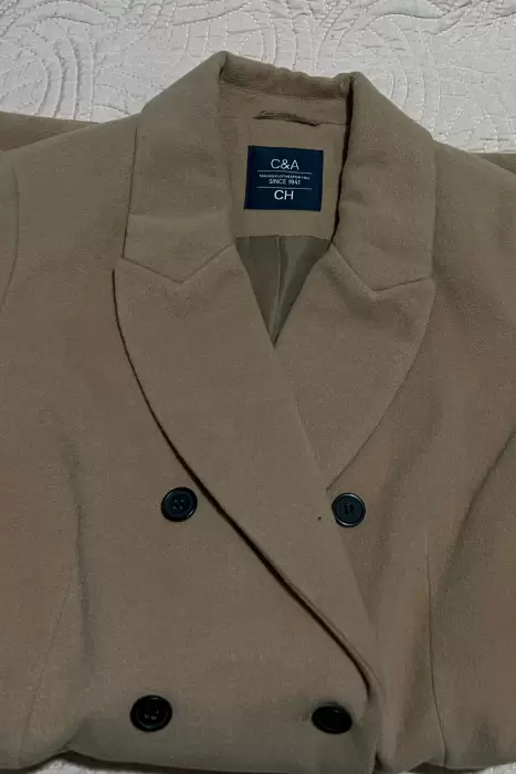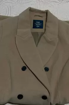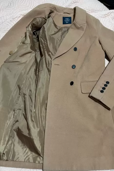 Abrigo color camel cya talla ch. Saco color camel talla CH, C&A sin detalles fiel a su talla.