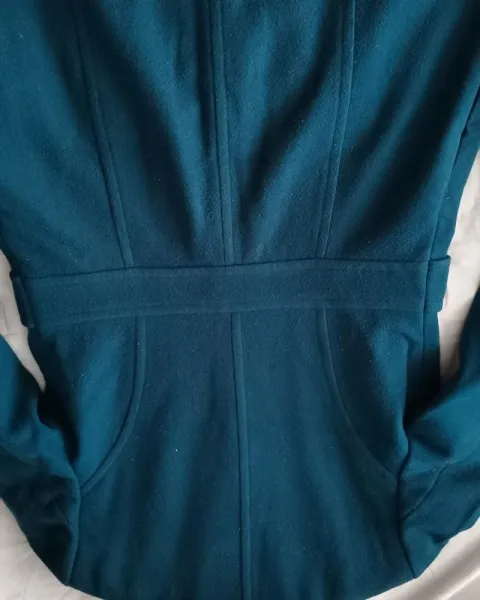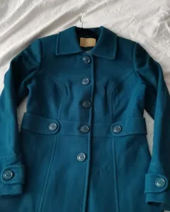 Color petróleoEs un abrigo hermoso color petróleo, las bolsas las trae de lado y están ampliasEs 100% de lana