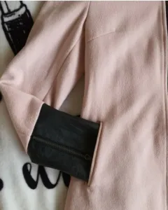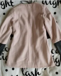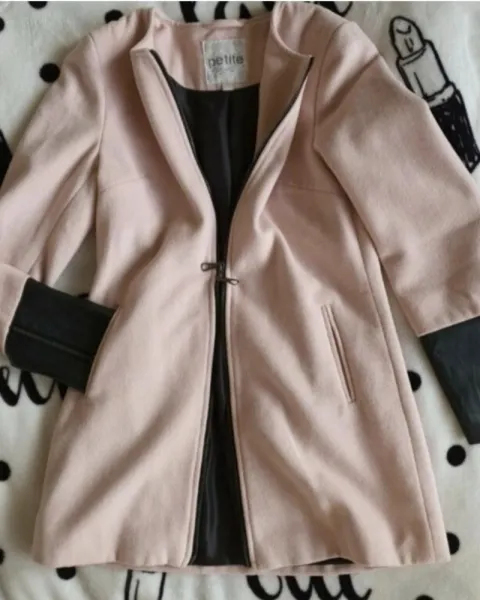 Abrigo con cierre y mangas vinipiel. Mide de hombro a hombro 37 cm y de axila a axila 43 cm, tiene cierre frontal abre por arriba y por abajo, con mangas vinipiel negras. Es un estilo formal pero tambien rockero muy padre combinación. Las mangas tienen cierre.