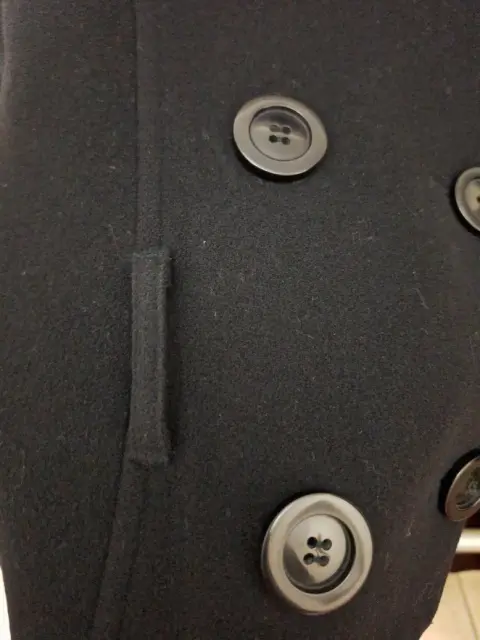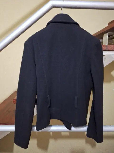 Abrigo corto con 6 botones, con cinturón, color negro. En excelente condiciones, calidad, se ve muy lindo, talla 9. Se uso muy poco