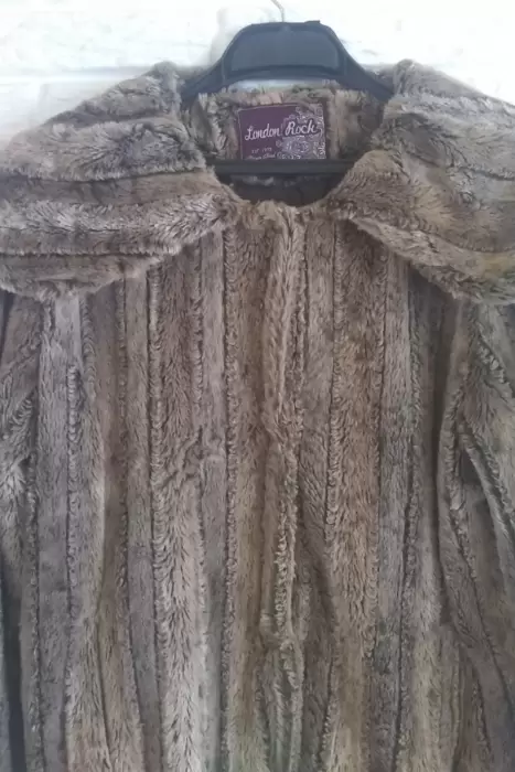 Abrigo de peluche en color dorado/café, de la Marca London Rock, ligero, elegante, muy suave al tacto, muy calientito, talla Mediana, se abrocha al enfrente, bolsas al frente, largo a la cadera, 100% poliéster, forro 100% poliéster, lavado y planchado en casa, solo 1 puesta, excelentes condiciones, sin detalles. Se entrega tal y como se ve en las fotos. El costo en tienda es de $ 850.00, lo vendo en $ 395.00
