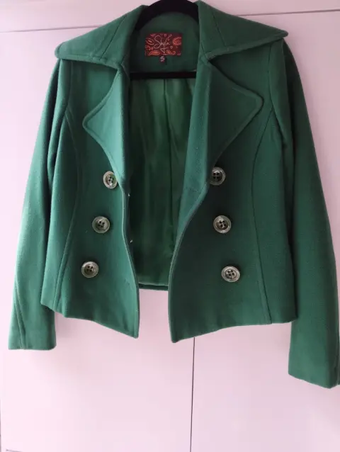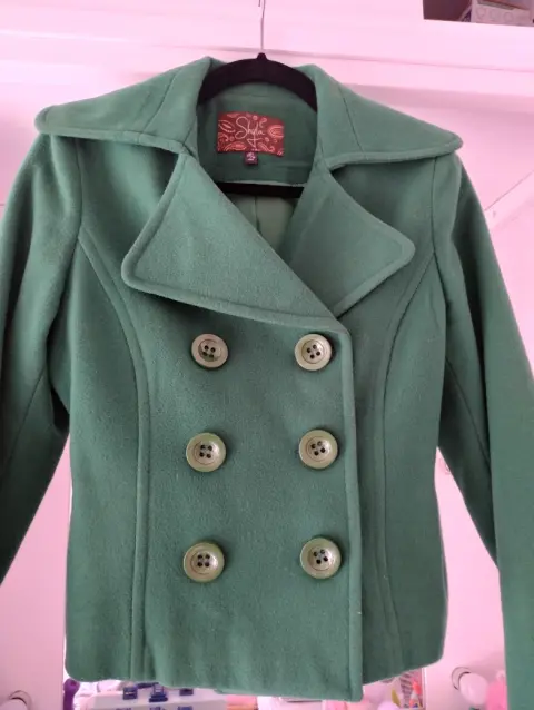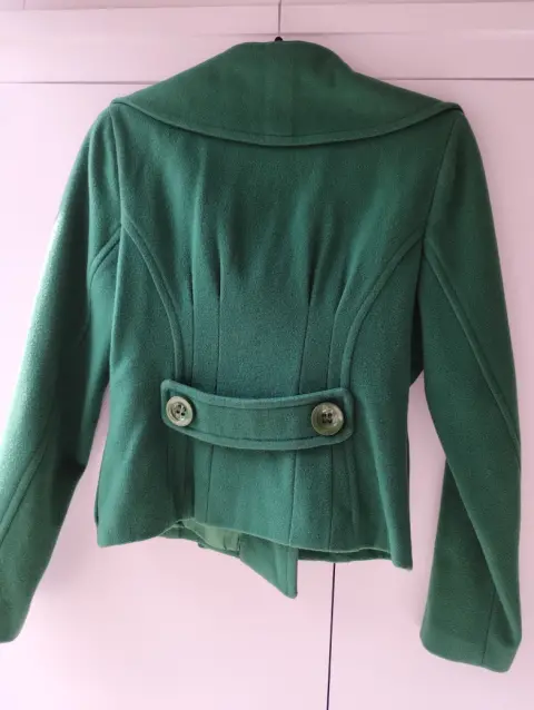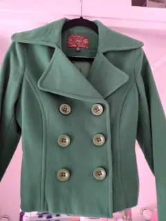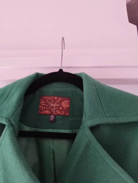 Abrigo corto SHYLA. Impecable prenda en tono verde puesto solo una vez va de una talla chica a mediana excelente calidad y precio 👌🤑 hermosa figura