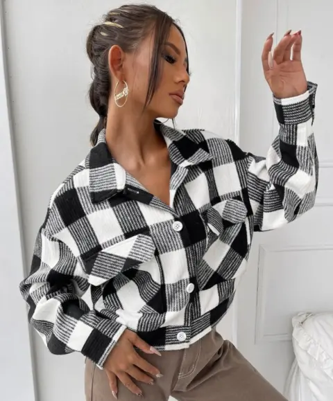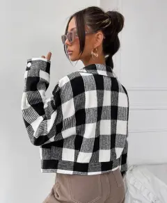 Abrigo de cuadros blanco y negro muy bonito, tiene una puesta, sin detalle. Viene amplio es talla XL (36/38 MX)