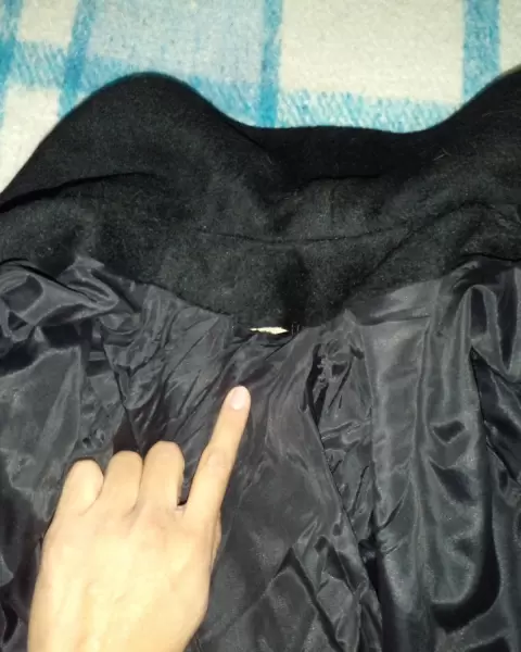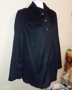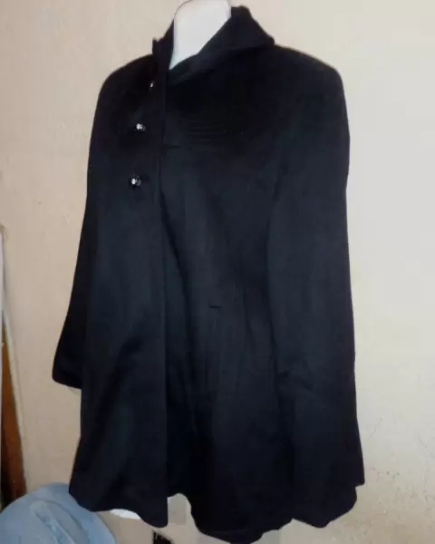 Abrigo negroDetalle bordado en la parte superiorTrae detalle, ligeramente descosido en la parte interior superiorTalla amplia