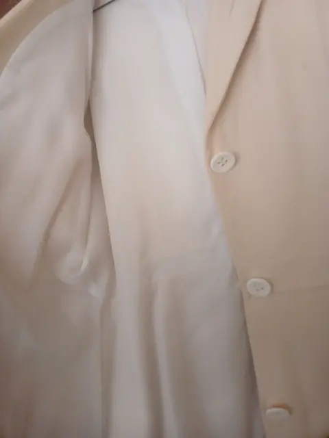 Abrigo color marfil de lana, en buen estado, es usado, el forro no está roto