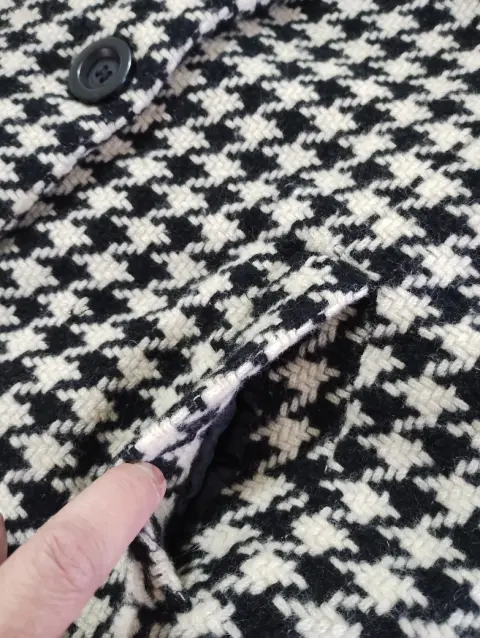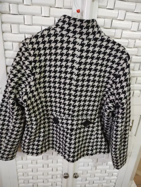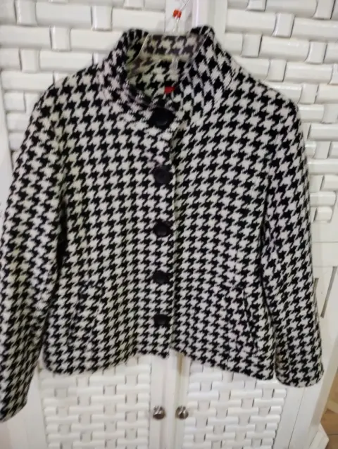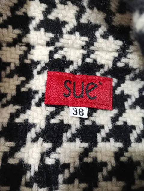 Abrigo de Lana Talla 38. Marca Sue con Forro Negro de Poliéster y 2 Bolsas Laterales Estampado de Cuadros *se pueden hacer paquetes de varias prendas para pagar un solo envío