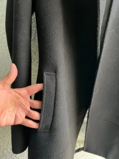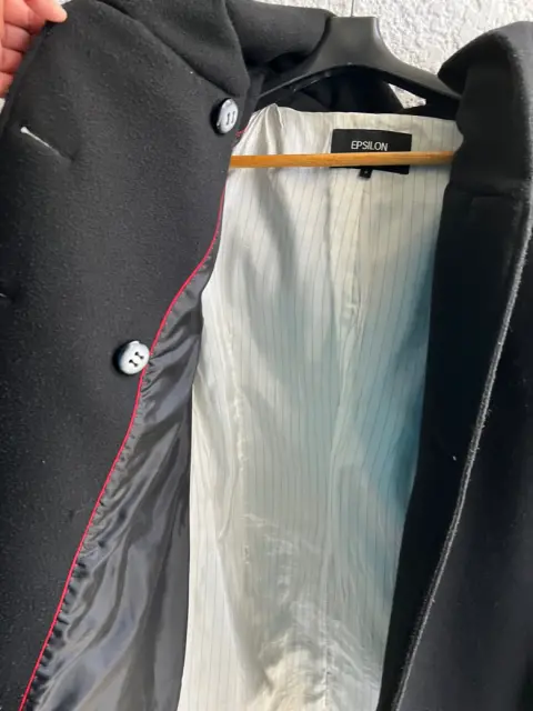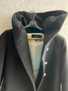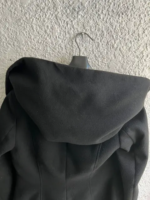 Abrigo ESILON Talla 6 Gran Capucha. Hermoso Abrigo ÉPSILON talla 6 gran capucha , marca la cintura, el color no está desgastado , negro intenso , calientito . pequeña mancha en el cuello casi in perceptibleLargo 80cmAxila a axila 47cmCintura 45cmAxila a axila