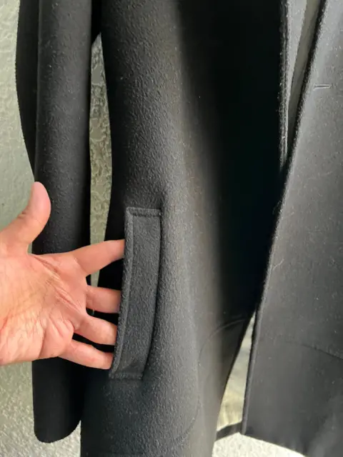 Hermoso Abrigo ÉPSILON talla 6 gran capucha , marca la cintura, el color no está desgastado , negro intenso , calientito . pequeña mancha en el cuello casi in perceptibleLargo 80cmAxila a axila 47cmCintura 45cmAxila a axila
