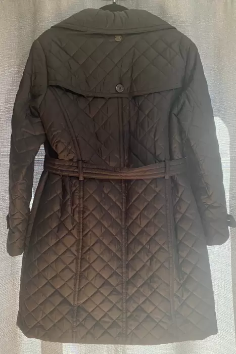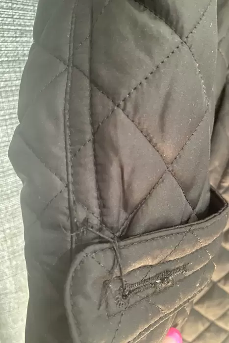 El abrigo está en perfecto estado pero le hace falta un botón en la cinta del puño (anexo foto) de ahí en fuera todo está 10/10, es capitonado, abrigador, tiene una cinta para ajustar la cintura y es perfecto para el invierno.