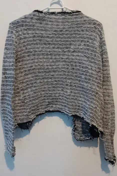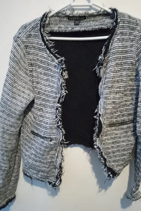 solo una puesta abrigo gris con negro trae cierres🐰🖤 es deshilachado de fabrica talla M Zara