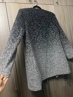 Abrigo súper elegante negro degradado con blanco con forro, súper cuidado. Talla M