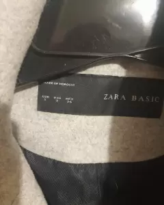 Abrigo Lana Zara. Hermoso abrigo lana en tono gris, forro negro, bolsas al frente, cierres dorados en buen estado, bies negro que cubre los cierres.Talla s.Medida de axila a axila 46Largo 86.