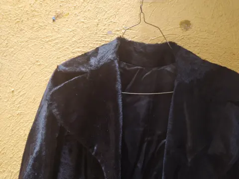 Abrigo largo. Hermoso abrigo largo color negro imitación pelo,talla chica,con forro interno para evento de niche