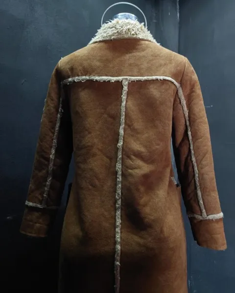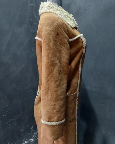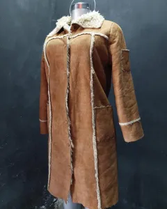 Abrigo largo (aprox. a la rodilla)Detalles: • color café, de piel y el interior es completamente de borrega.• la piel está en perfectas condiciones • no está roto, ni sucio. El único detalle es que le falta un botón. • cero rígido*dato: la etiqueta dice talla 12. Yo soy talla M, me cierra pero me queda un poco justo de los brazos y hombros. Yo creo que a alguien Talla S si le va.