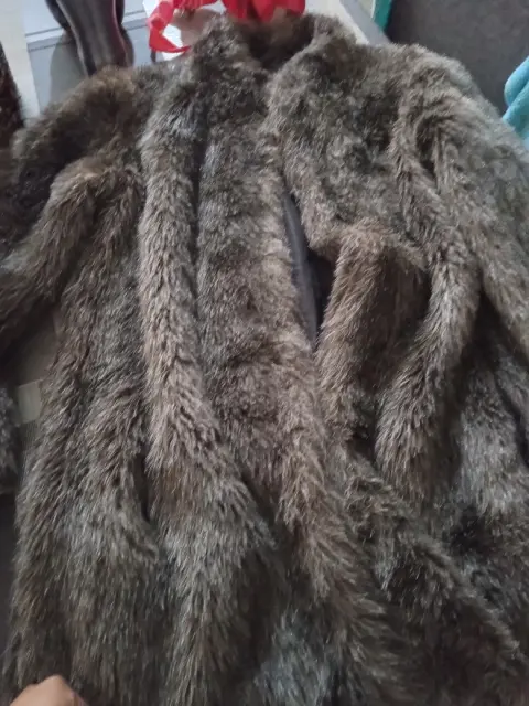 Abrigo largo de piel sintética. Abrigo de piel sintética Talla mediana Se utilizó 1 sola vezSin detalles