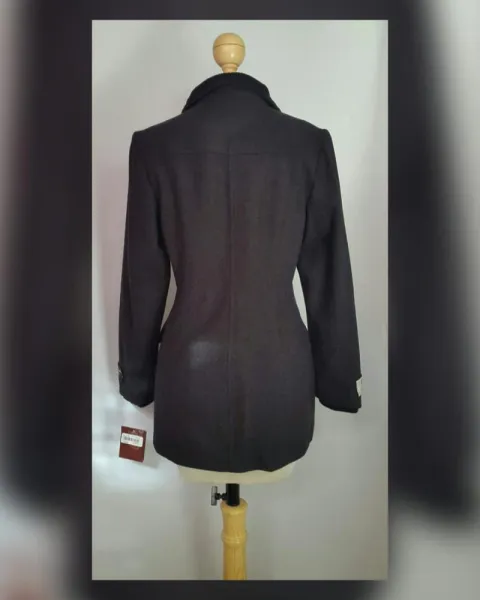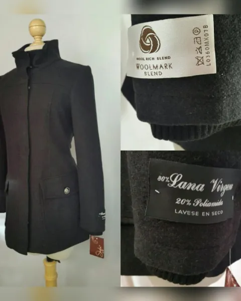 Abrigo en lana peinada color GRIS OXFORD, cuello clásico c/solapas y aplique cardigan convertible a cuello alzado, cierre p/cremallera oculta p/tapeta y snaps, 2 bolsos plastrón c/tapeta y botonadura, manga larga terminada en puño cardigan y forro interior. Talla 32. Dimensiones cms: 42 hombro, 52 axila, 45 cintura, 61 zona baja, 79 largo, 63 largo manga. 80% lana, 20% poliamida. P/lavado en seco.***APROVECHA, ESTA MARCA YA NO COMERCIALIZA ABRIGOS CON ESTE PORCENTAJE DE LANA***ESTA PRENDA ESTA AVALADA CON EL SIMBOLO *WOOLMARK BLEND* QUE CONSTATA EL ALTO ESTANDAR DE CALIDAD DE ESTA PRENDA ELABORADA EN LANA***