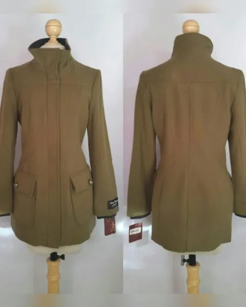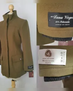 Abrigo en lana peinada color VERDE MUSGO, cuello clásico c/solapas y aplique cardigan convertible a cuello alzado, cierre p/cremallera oculta p/tapeta y snaps, 2 bolsos plastrón c/tapeta y botonadura, manga larga terminada en puño cardigan y forro interior. Talla 32. Dimensiones cms: 41 hombro, 51 axila, 45 cintura, 60 zona baja, 79 largo, 63 largo manga. 80% lana, 20% poliamida. P/lavado en seco.***APROVECHA, ESTA MARCA YA NO COMERCIALIZA ABRIGOS CON ESTE PORCENTAJE DE LANA***ESTA PRENDA ESTA AVALADA CON EL SIMBOLO *WOOLMARK BLEND* QUE CONSTATA EL ALTO ESTANDAR DE CALIDAD DE ESTA PRENDA ELABORADA EN LANA***