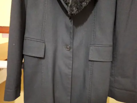 Abrigo Ligero con solapa desmontable. Saco largo su tela no es abrigadora es estilosa, con solapa de peluche fino desmontable, con cintillo en el trasero, con bolsas, da linda figura. Largo aproximadamente tipo Midi ideal para usar con jeans,leggins, vestidos entallados o de fiesta. Tiene forro todo en excelentes condiciones se uso muy poco. Talla 32 para tallas desde la 9 a la 10 o 11.