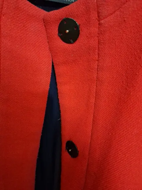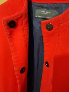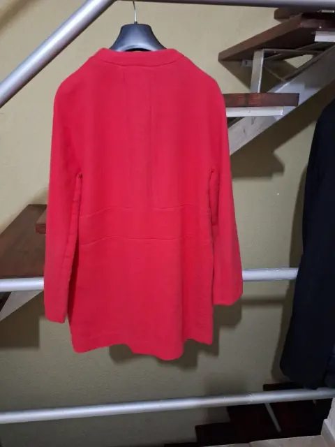 Abrigo/Saco ligero en color rojo, con cuello redondo, bolsas simuladas, es recto. Talla M , composición poliester
