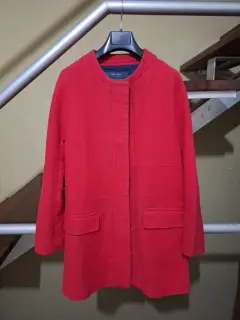 Abrigo ligero Rojo. Abrigo/Saco ligero en color rojo, con cuello redondo, bolsas simuladas, es recto. Talla M , composición poliester