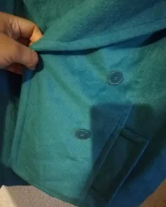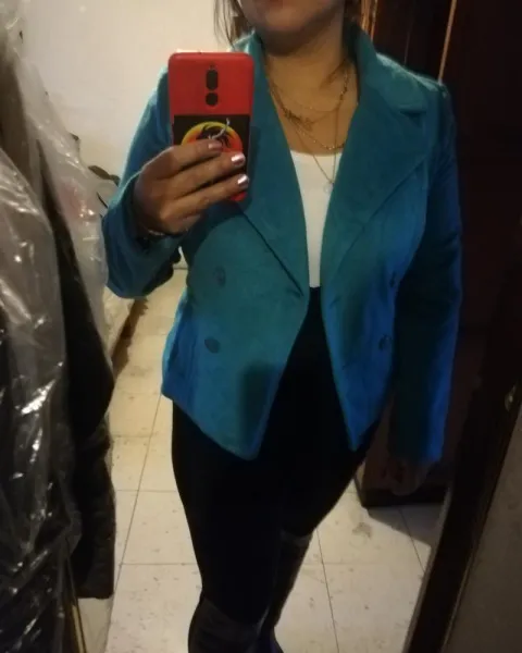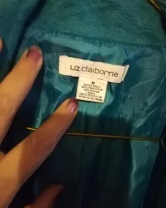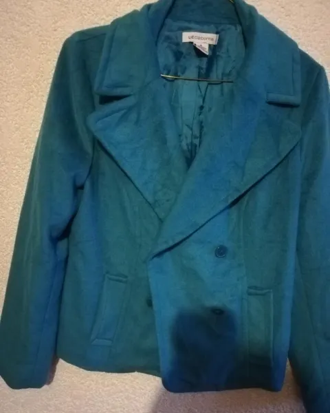Abrigo Liz clairbone el color es Turquesa, tela tipo afelpadita, viene amplio a talla g muy lindo, calientito para uso formal y casual