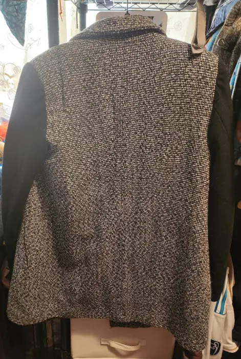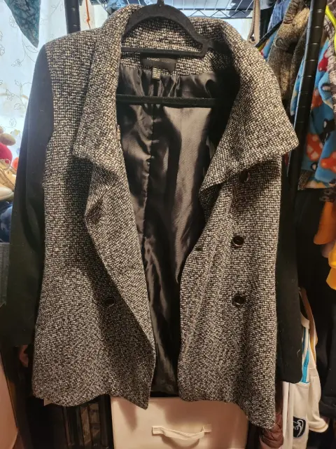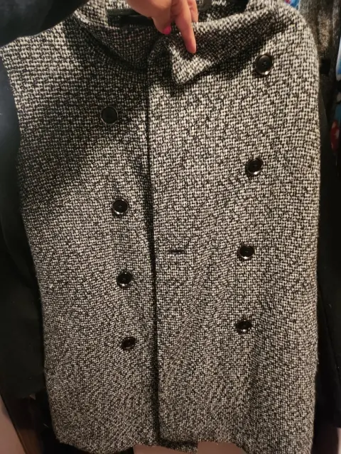 Abrigo mangas negras. Abrigo casual tejido blanco con negro y mangas negras en talla chica marca mango y justo para esta temporada invernal